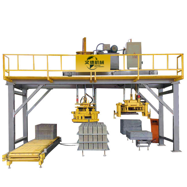 全自動(dòng)高位離線碼磚機(jī)生產(chǎn)線主要是泉州文德機(jī)械公司針對目前磚廠生產(chǎn)中,人工碼垛勞動(dòng)強(qiáng)度大、生產(chǎn)效率低而研發(fā)的一種專用碼垛系統(tǒng),可獨(dú)立運(yùn)行,大大提高了砌塊生產(chǎn)的自動(dòng)化。 主要由兩個(gè)部分組成:砌塊碼垛和托板回收碼垛。根據(jù)不同客戶需求,我們推出高位離線碼垛系統(tǒng)和低位離線碼垛系統(tǒng),主要區(qū)別在于:高位離線碼垛系統(tǒng)采用抓碼方式,低位離線碼垛系統(tǒng)采用疊碼方式。